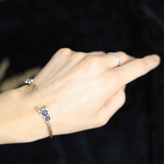 Bronze Branch Bracelet with Silver Blossoms 52x62mm