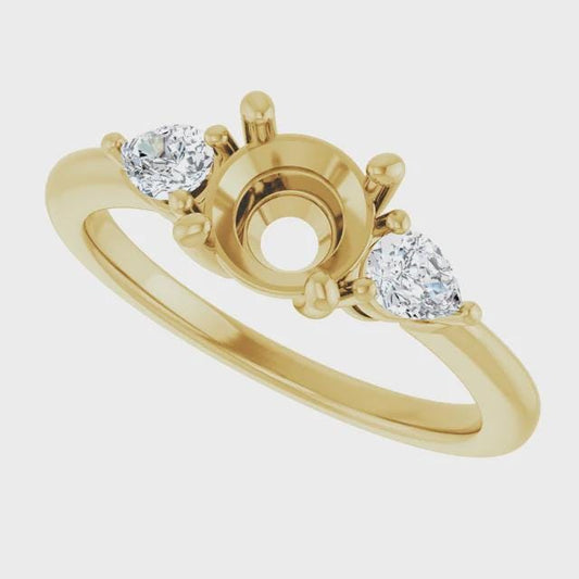 Engagement Ring, Semi Mount in 14k Gold, choose round, oval, or marquise setting