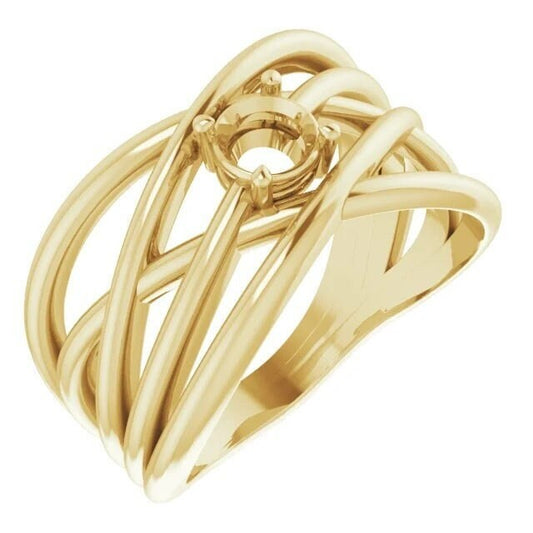 Round solitaire criss-cross ring mounting available in Sterling silver, or 14k solid gold