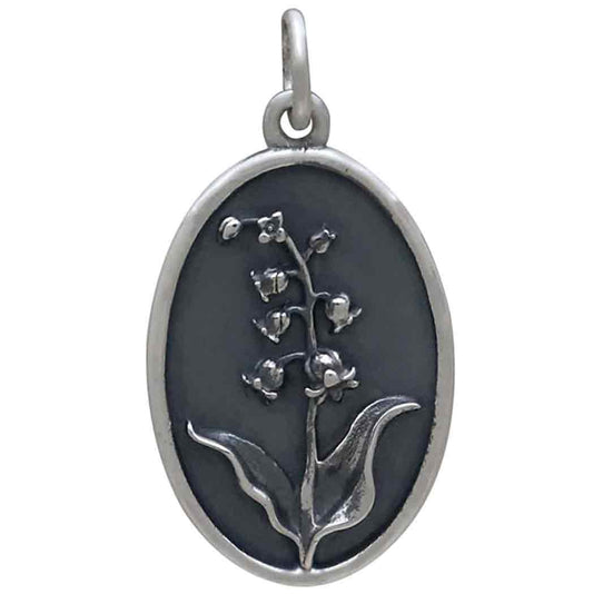 Silver Lily of the Valley Charm - May Birthflower 25x13mm