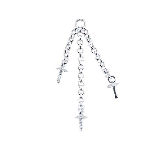Sterling Silver 3-Strand Component with Cup and Peg, Pearl Earrings, Pearl Pendant Setting,