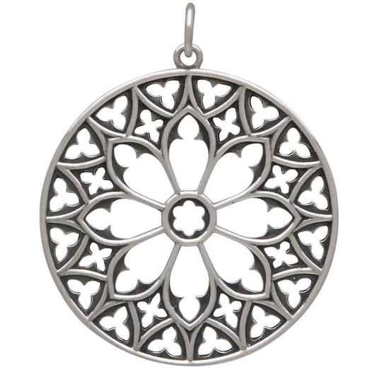 Sterling Silver Cathedral Rose Window Pendant 36x30mm