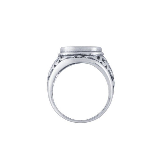 Sterling Silver Emerald Cabochon Ring Mounting: 12x10mm Ridged Men's Ring