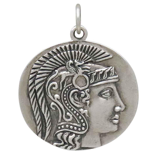 Sterling Silver Goddess Athena Coin Pendant 25x21mm