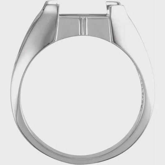 Sterling Silver Emerald Cabochon Ring Mounting: 12x10mm Ridged Men's Ring