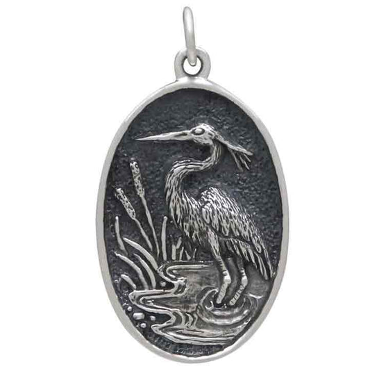 Sterling Silver Heron in Pond Pendant 30x16mm