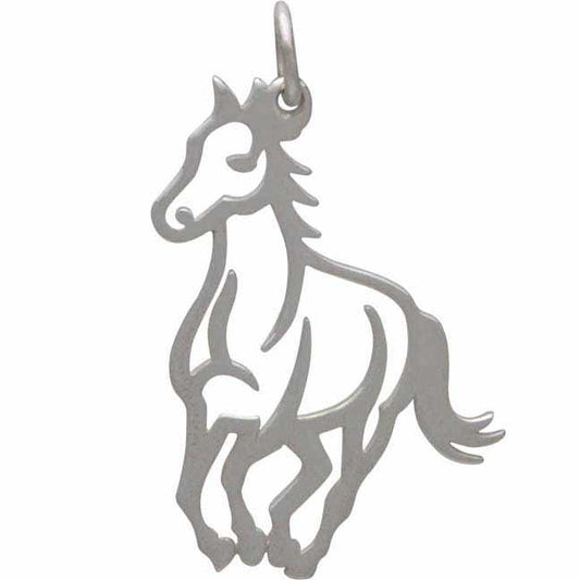 Sterling Silver Horse Pendant - Openwork Horse Charm 28x19mm