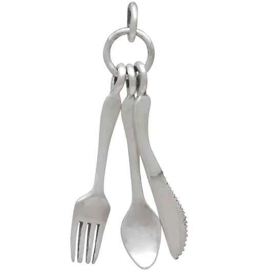 Sterling Silver Knife Spoon and Fork Charm 30x8mm