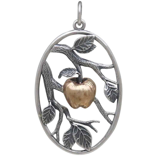 Sterling Silver Leaf Pendant with Bronze Apple 34x19mm