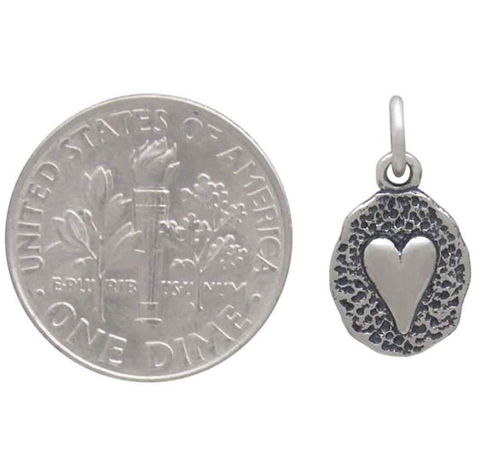 Sterling Silver Heart on Oval Coin Charm 17x9mm