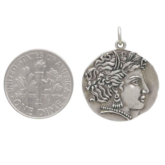 Sterling Silver Goddess Demeter Coin Pendant 25x20mm