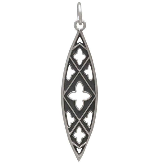 Sterling Silver Gothic Marquis Pendant 38x9mm