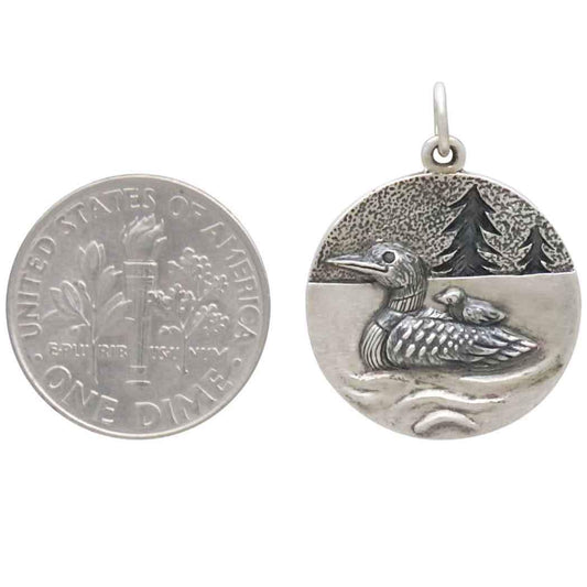 Sterling Silver Loon with Baby Pendant 24x18mm
