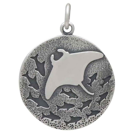 Sterling Silver Manta Ray and Fish Charm 24x18mm
