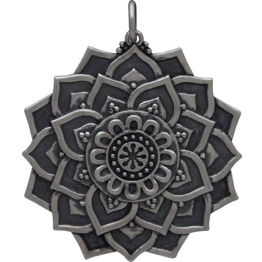 Sterling Silver Medium Lotus Mandala Pendant 32x25mm
