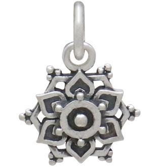 Sterling Silver Lotus Mandala Charm with Granulation 15x10mm