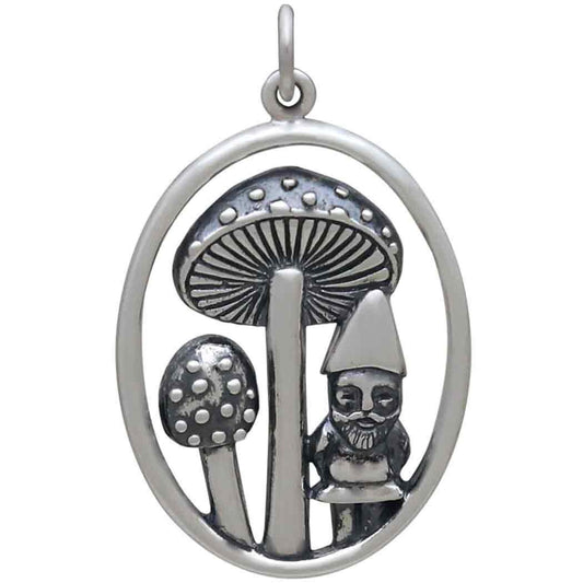 Sterling Silver Mushroom and Gnome Pendant 31x19mm