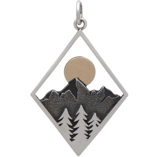 Sterling Silver Mountain Charm with Bronze Crescent 21x15mm