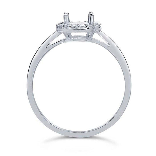 Sterling silver rhodium-plated 8 x 6mm oval semi-mount engagement ring mounting avilable in sz 7 and 8