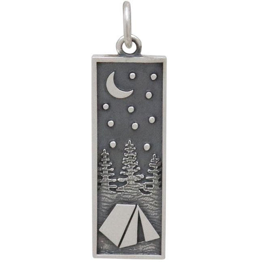 Sterling Silver Rectangle Camping Charm with Tent 28x8mm
