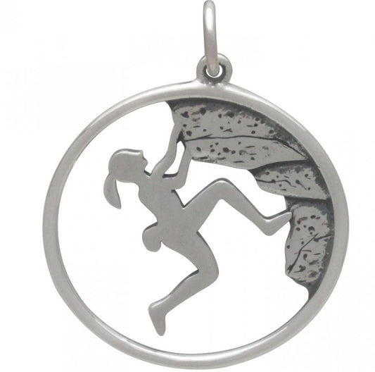 Sterling Silver Rock Climbing Girl Pendant 25x20mm