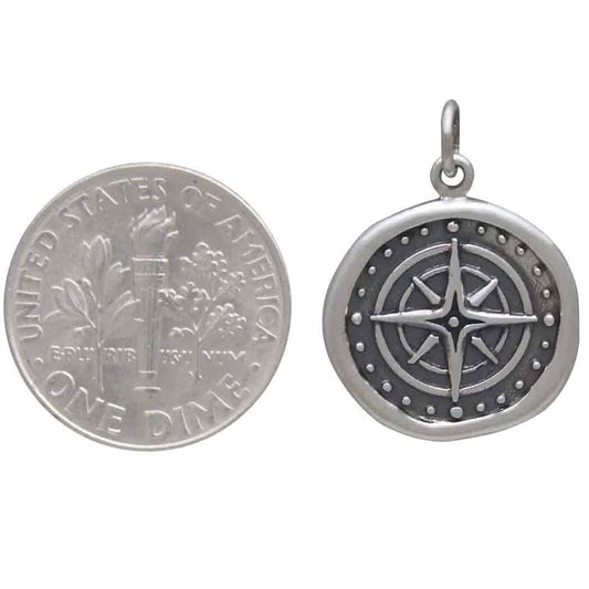 Sterling Silver Wax Seal Compass Charm 22x16mm