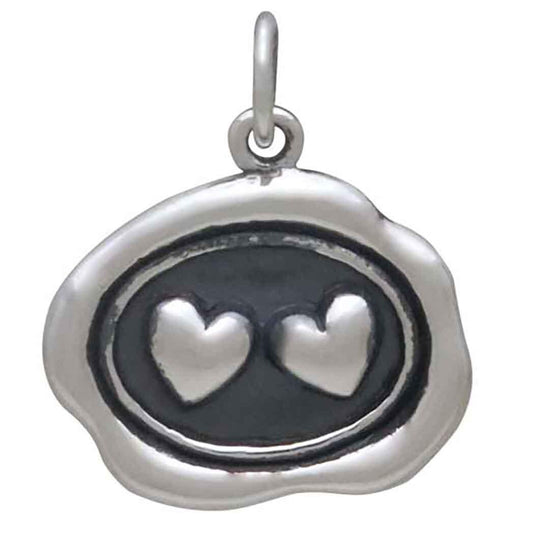 Sterling Silver Wax Seal Double Heart Charm 20x16mm
