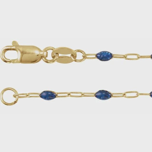 14K Yellow Gold-Filled 1.6 mm Enamel Bead Paperclip-Style Chain, choose your color and length