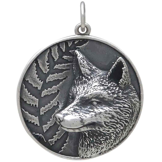 Sterling Silver Fox and Fern Pendant 28x22mm