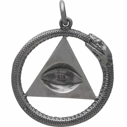 Sterling Silver All Seeing Eye and Ouroboros Pendant 26x21mm