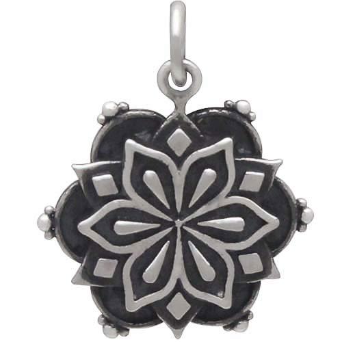 Sterling Silver Affirmation Mandala Charm -Gratitude 21x17mm