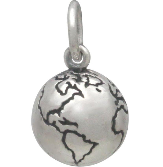 Sterling Silver 3D World Charm 14x8mm
