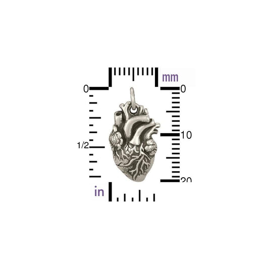 Sterling Silver Anatomical Heart Charm 21x10mm