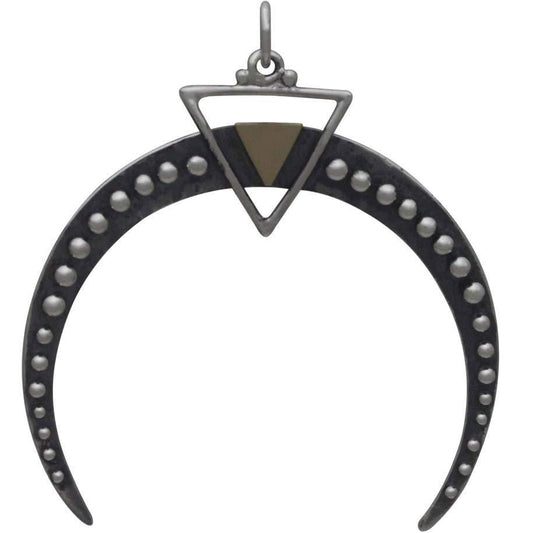 Silver Crescent Moon Pendant with Bronze Triangle 39x35mm