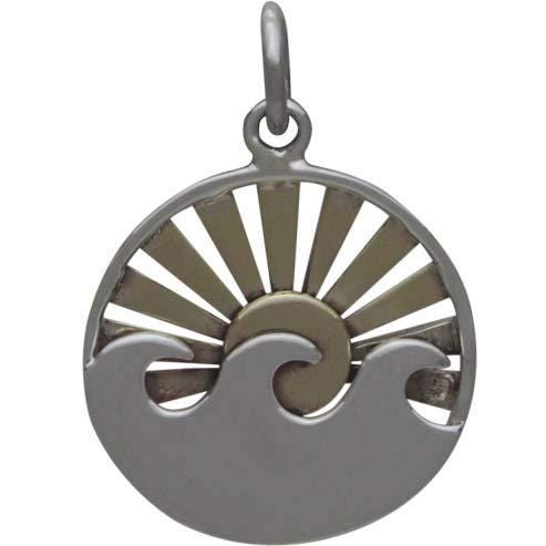 Sterling Silver Wave Charm with Bronze Setting Sun
