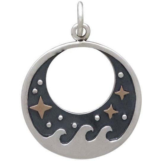 Sterling Silver Wave Charm with Bronze Stars (23x17mm)