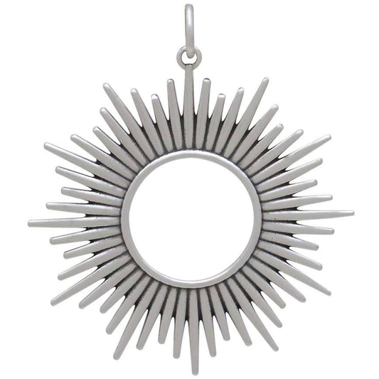 Sterling Silver Spikey Sun Pendant 37x32mm