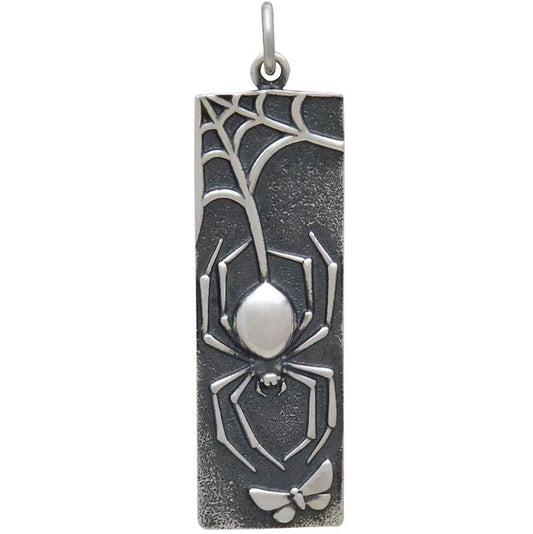 Sterling Silver Spider Pendant on Rectangle 37x10mm