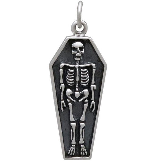 Sterling Silver Skeleton Charm in Coffin 29x10mm
