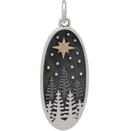Sterling Silver Pine Tree Charm with Bronze Star 28x10mm