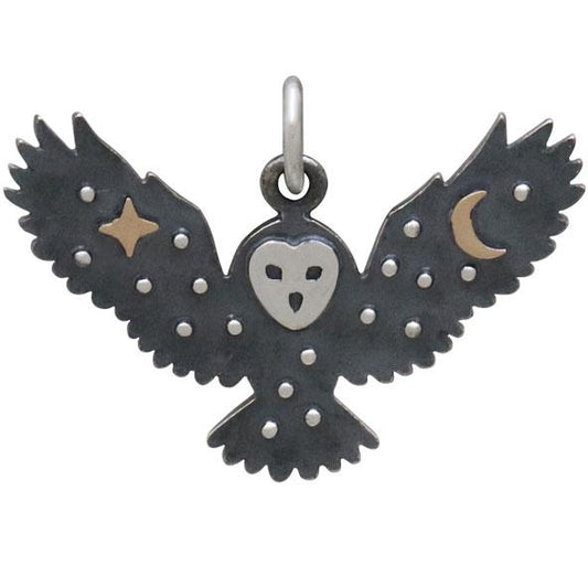 Sterling Silver Owl Charm with Bronze Star and Moon 18x25mm