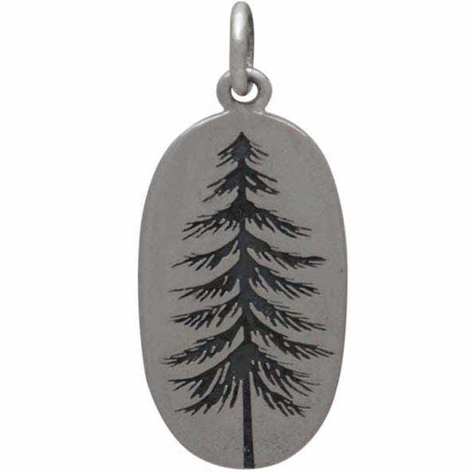 Sterling Silver Pine Tree Charm Etched on an Oval 26x10mm