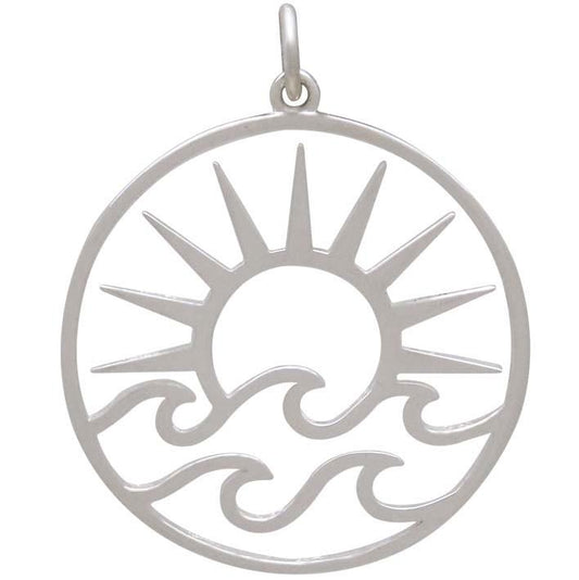 Sterling Silver Openwork Sun Pendant with Waves 30x25mm