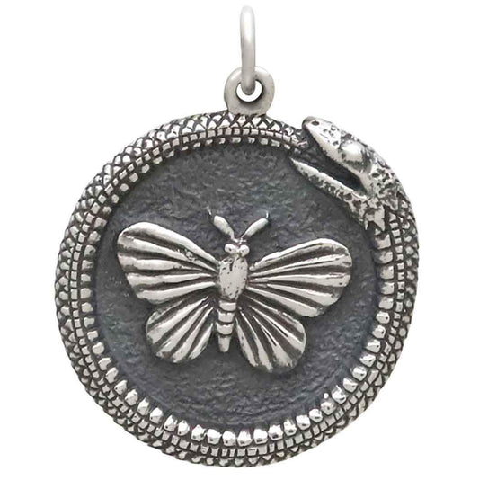 Sterling Silver Ouroboros Snake w Butterfly Pendant 27x21mm