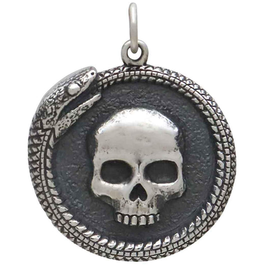 Sterling Silver Ouroboros Snake with Skull Pendant 27x21mm