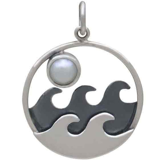 Sterling Silver Ocean Pendant with Pearl Moon 24x18mm