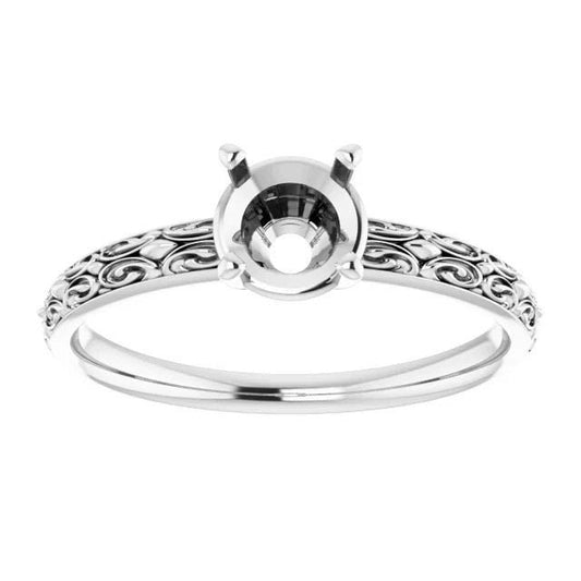 Vintage Style Sterling Silver Solitaire Ring Mounting - 6mm Round Prong Setting
