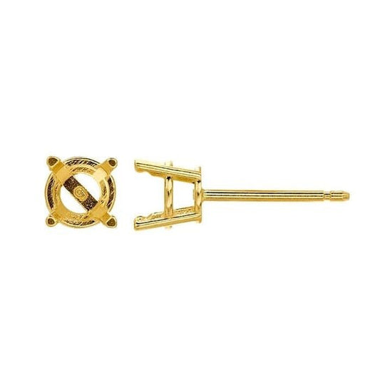 14k Gold Round Stone Earring Mounting: Pre-Notched Basket Setting