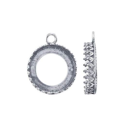 Sterling silver oxidized round gallery wire bezel pendant mounting