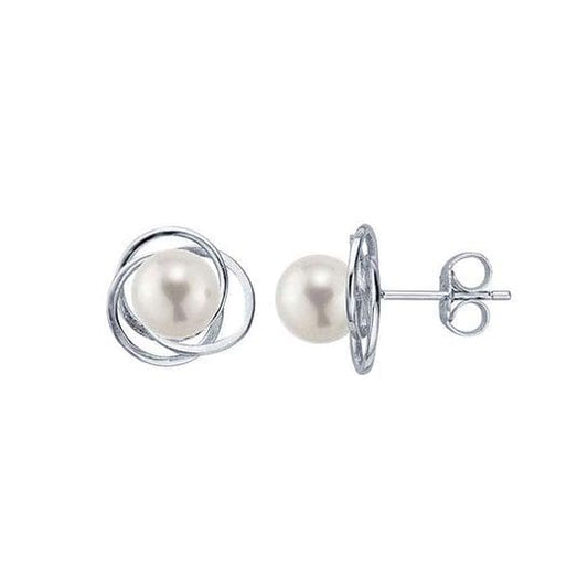 Sterling Silver Rhodium-Plated Love Knot 4.5mm Pearl Post Earring Mounting, also available in 14k Gold